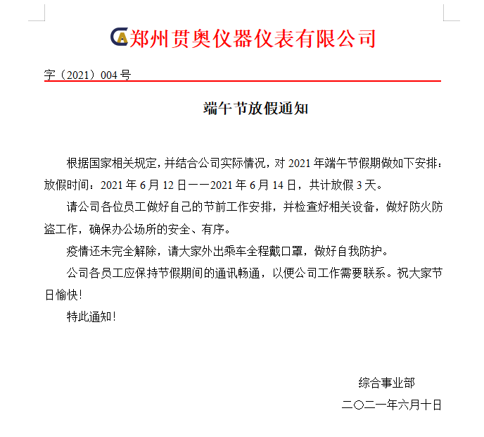 根據(jù)國家相關(guān)規(guī)定,并結(jié)合公司實(shí)際情況,現(xiàn)對2021年端午節(jié)假期做出以下安排: